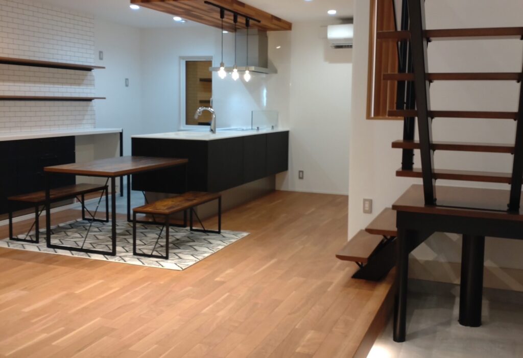 中に入るとオープン階段と吹き抜け空間が広がります。